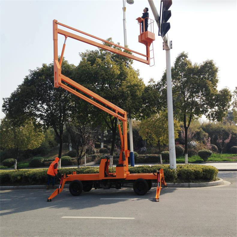 拖車曲臂式升降機:可以掛在汽車上,與汽車同步,適合野外高空作業。升降方式:1、用380-220V電源2、用電源不方便,可以用電瓶驅動升降。外型美觀,行走方便。